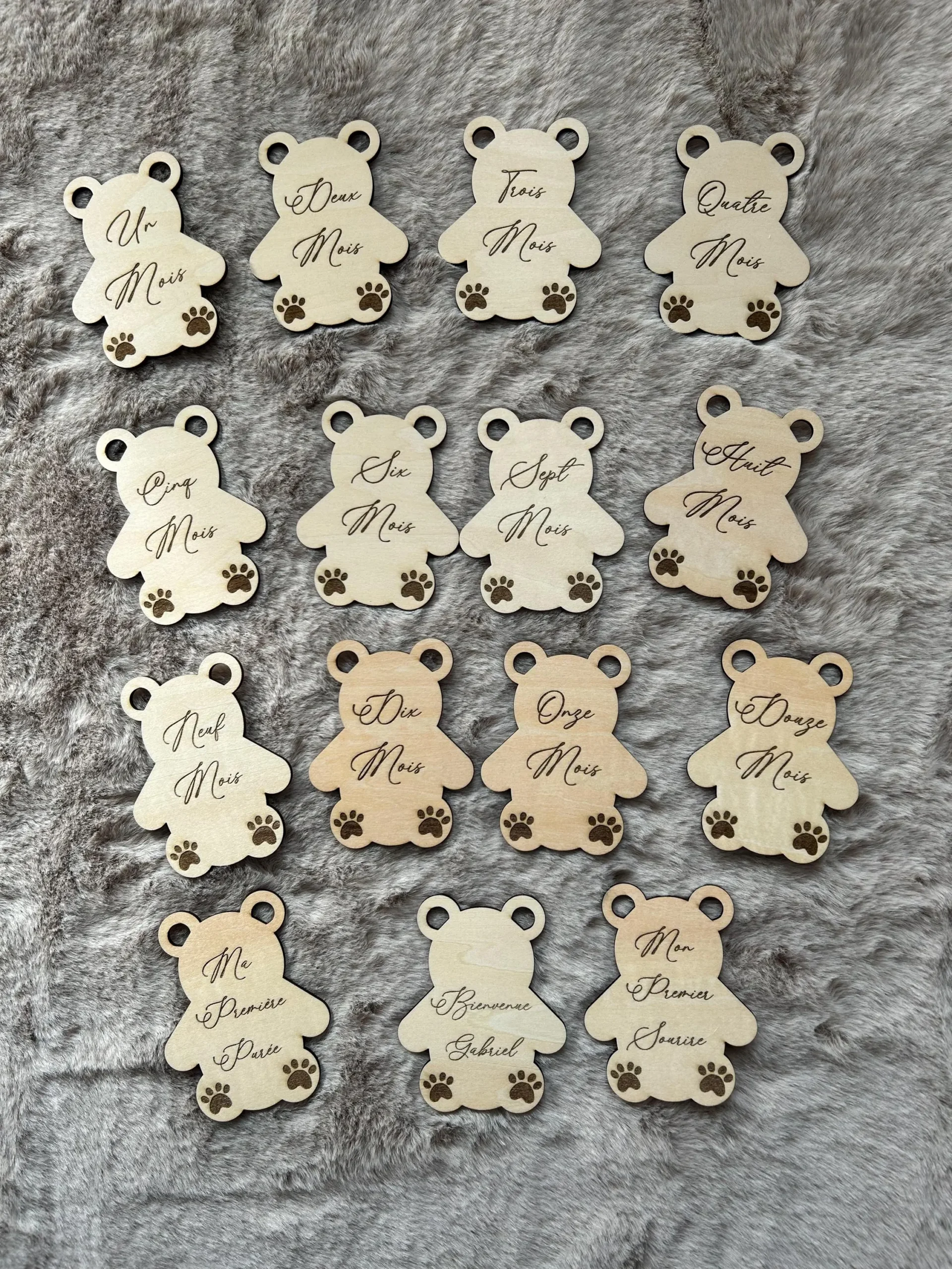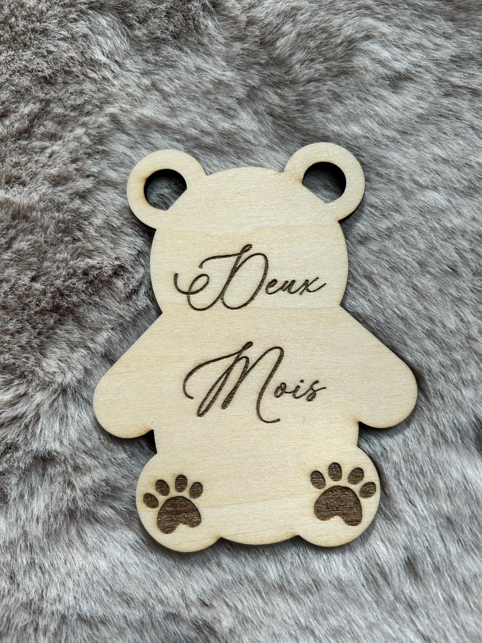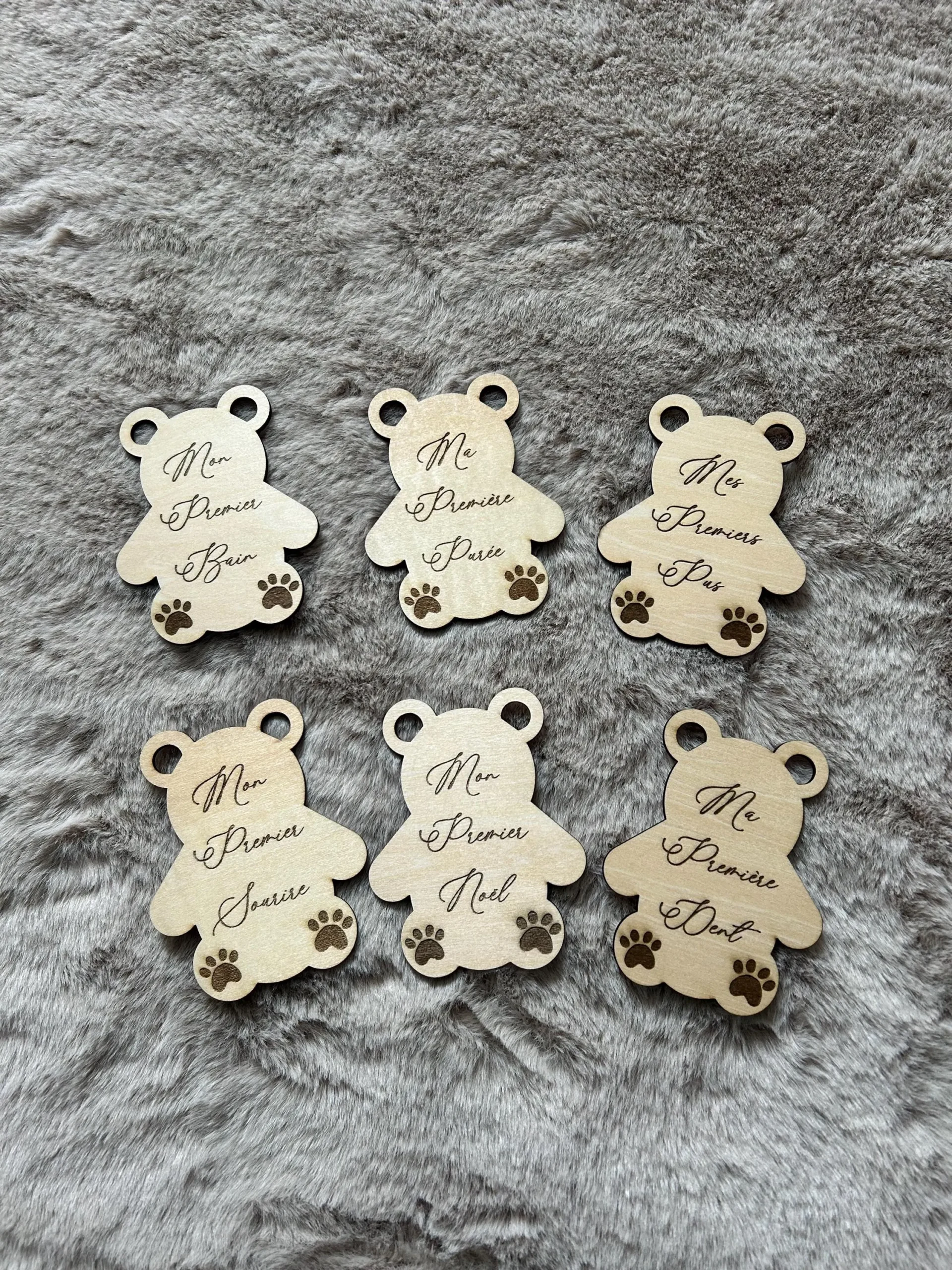 Cartes étapes en bois Personnalisé en forme d’ourson.