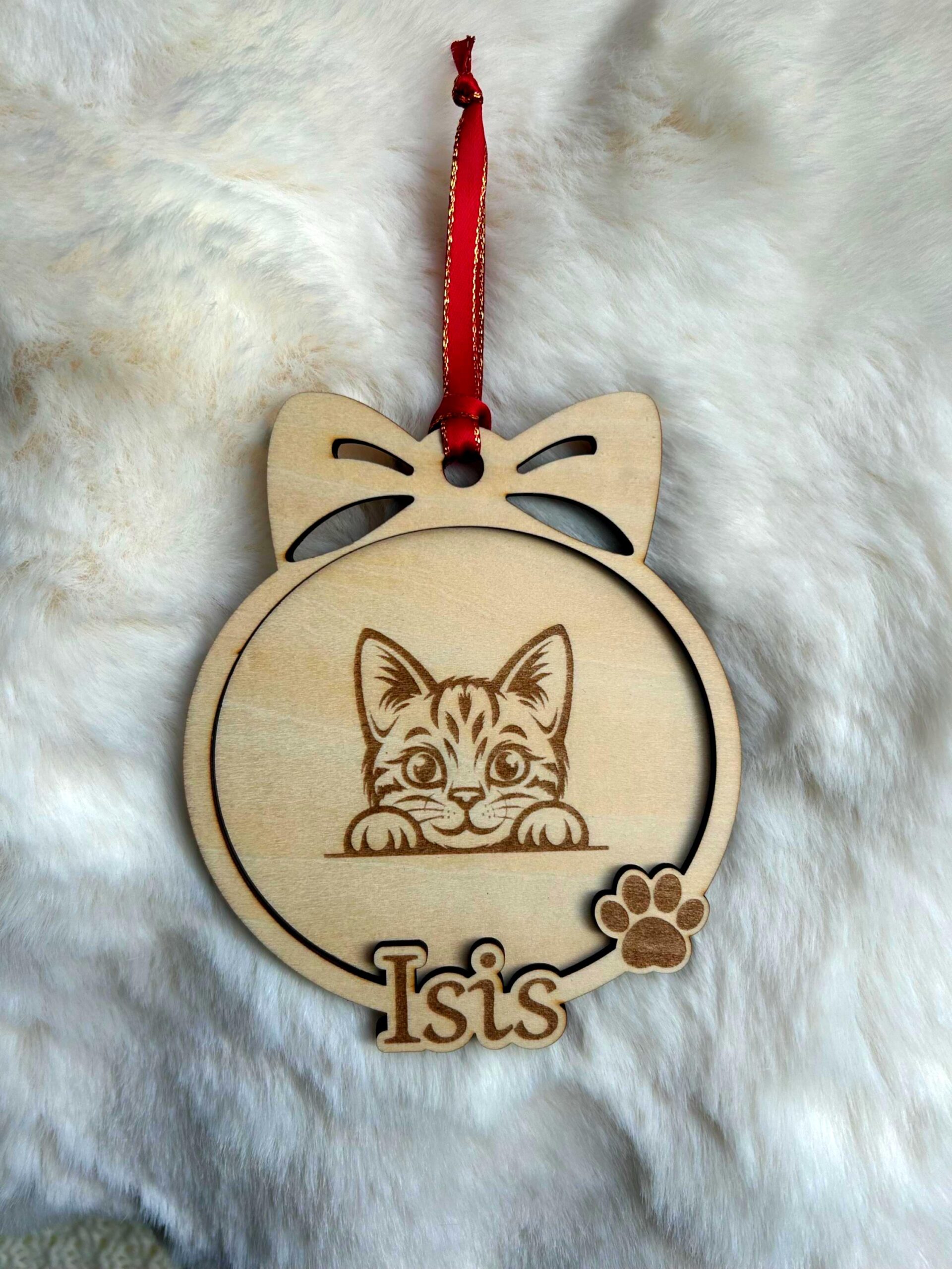 Offrez un souvenir unique à ceux qui aiment leur compagnon félin 🐱. Cet ornement en bois, gravé avec le prénom de votre chat et son adorable frimousse, est bien plus qu’une décoration, c’est une touche de tendresse à suspendre au sapin ou à garder toute l’année.