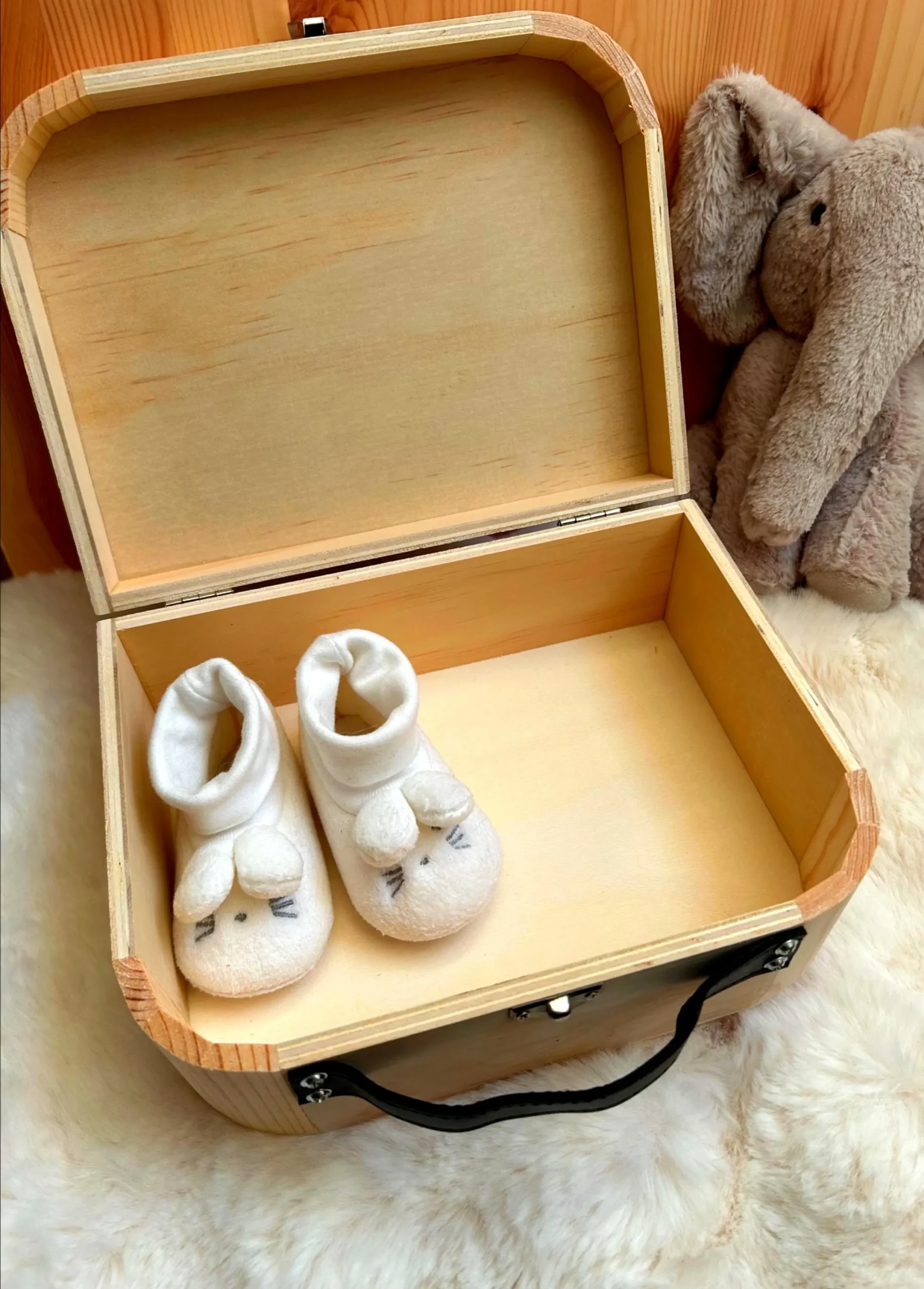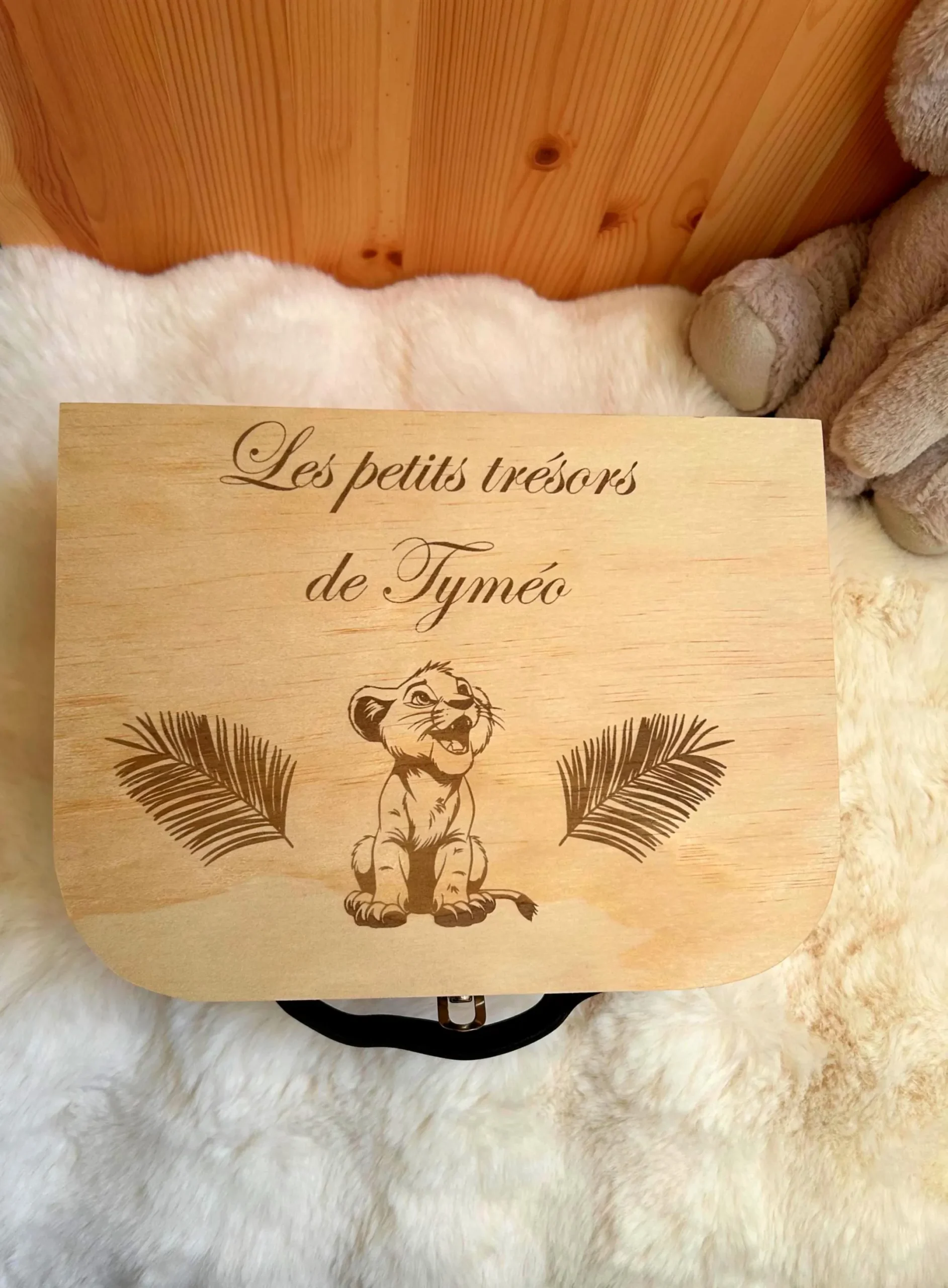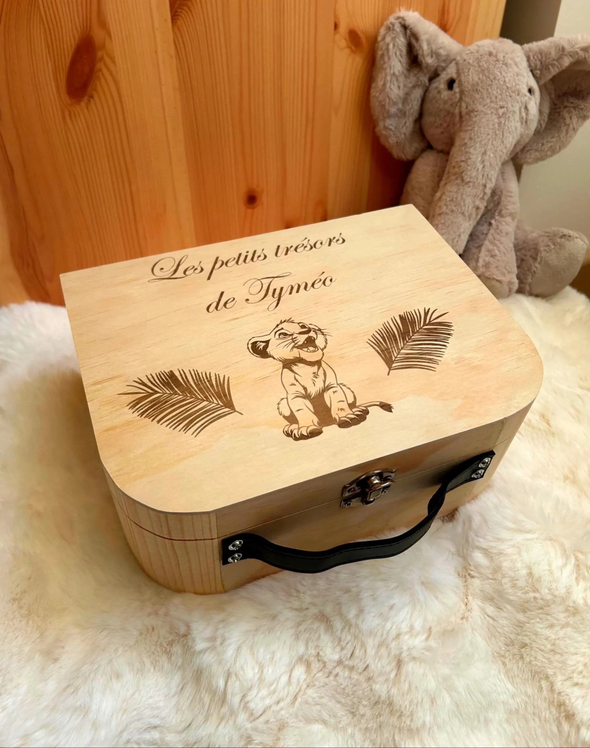Cette jolie valise en bois gravée personnalisé avec le prénom de l’enfant est idéale pour conserver les souvenirs précieux d’un enfant : bracelet de naissance, première mèche, petits mots, photos…
